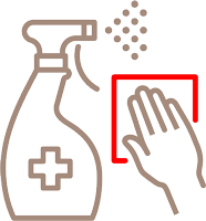Nettoyage accru des surfaces, tables, chaises, fauteuils, des équipements et des textiles de nos établissements au moyen de produits désinfectants homologués.